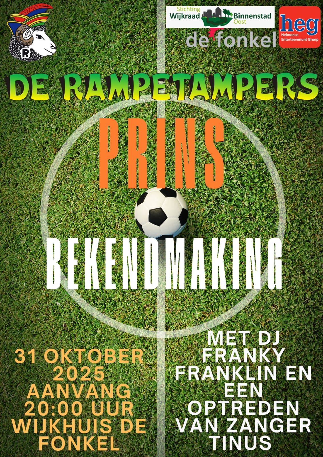 DJ Franky Franklin zorgt voor een swingende warming-up, en niemand minder dan Zanger Tinus geeft een spetterend optreden. Daarna onthullen we wie dit jaar de nieuwe prins(es) der Rampetampers wordt – hét hoogtepunt van de avond!