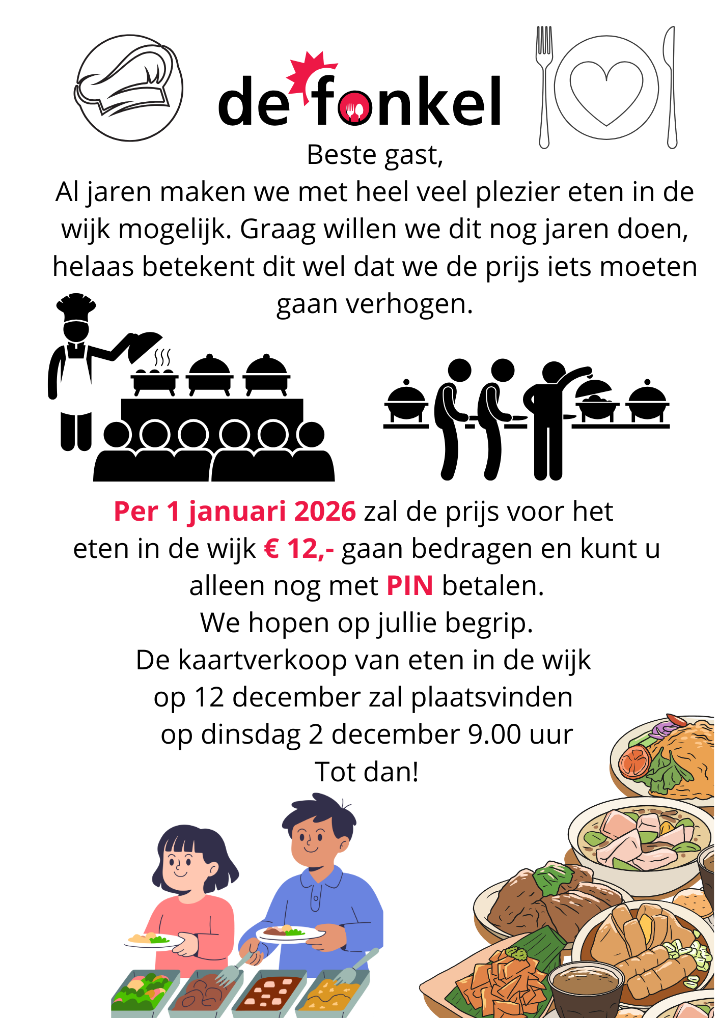 Prijsverhogen per 2026 voor het eten in de wijk, voortaan alleen pin betaling